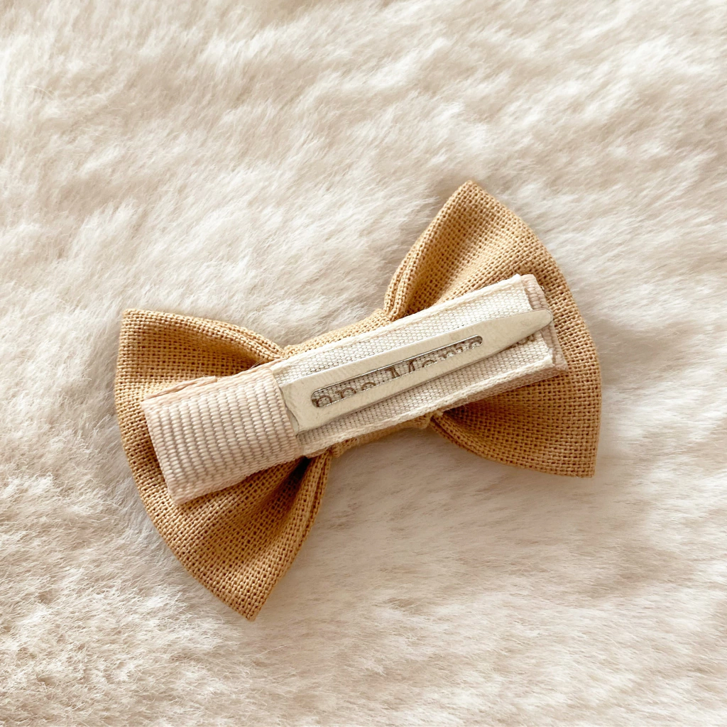 Kit com 3 laços Mariana em tecido 100% algodão, disponível na faixinha nude e clip bico de pato.