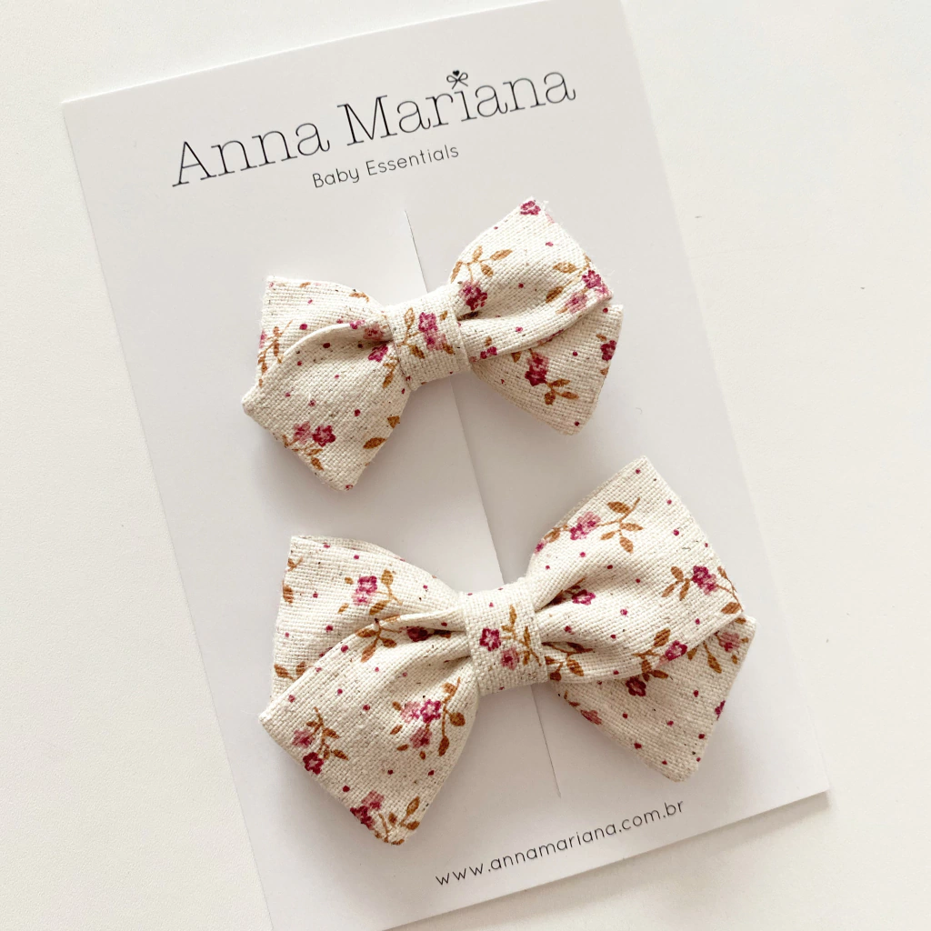 Laço Clarinha confeccionado no linho floral! Disponível na faixinha nude ou clip bico de pato semi forrado!