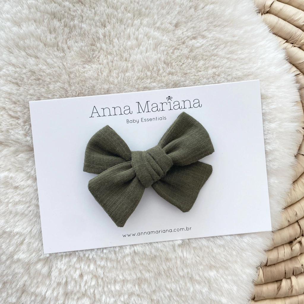 Laço Lily em tecido 100% algodão na cor verde escuro! Disponível na faixinha nude ou clip bico de pato semi forrado!